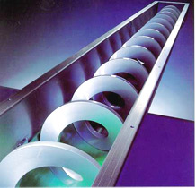 最も搬送物の用途が広く、搬送トラブルがない、長距離搬送や垂直搬送が可能なシャフトレススクリューコンベア